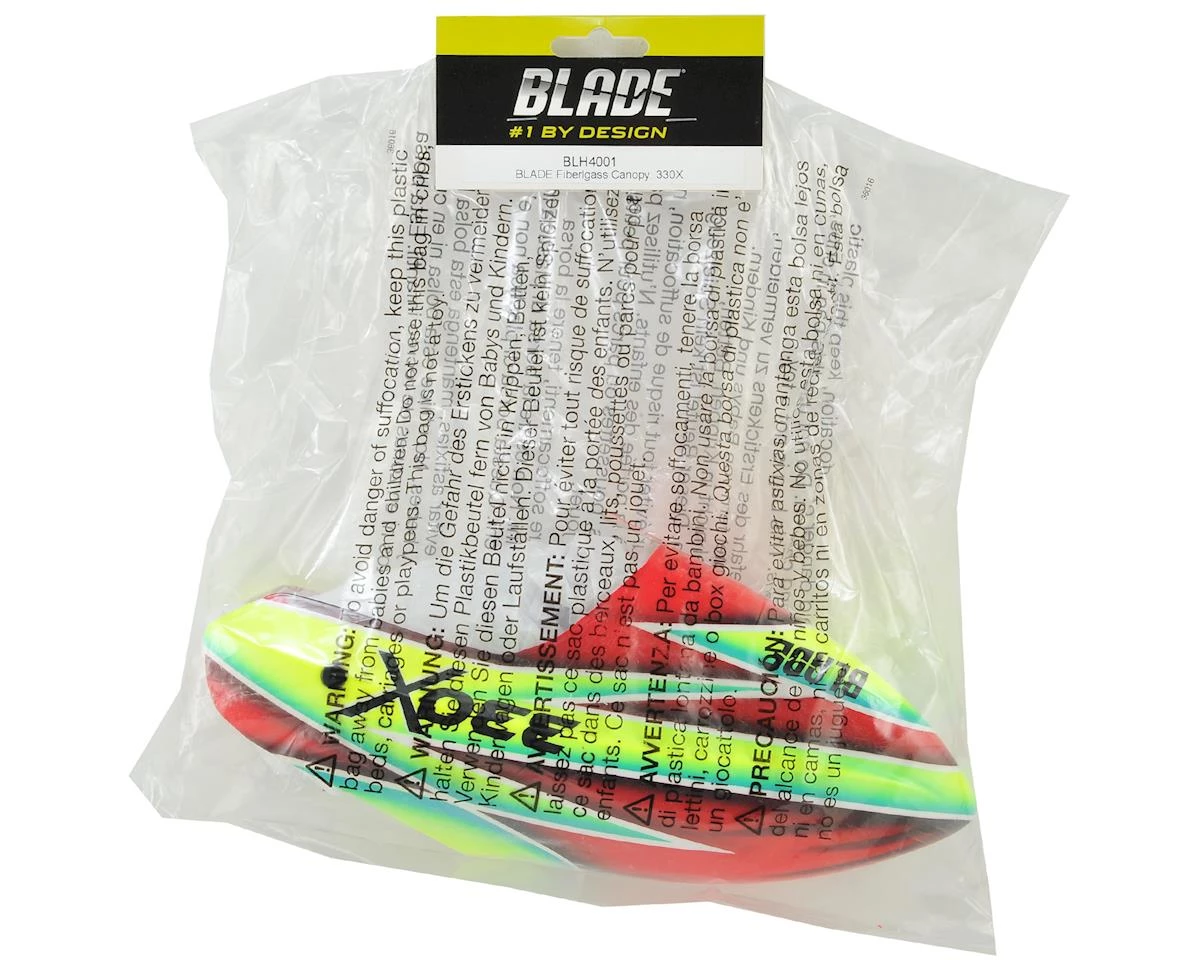 This is an optional Blade Painted Fiberglass Canopy in Green and Red colors, suited for use with the Blade 330X helicopter.Â