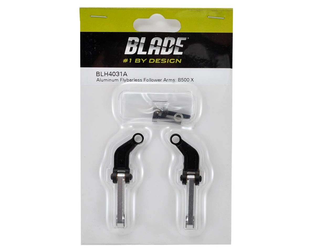 This is a pack of two replacement Blade Aluminum Flybarless Follower Arms. Package includes two pre-built follower arms and installation hardware.